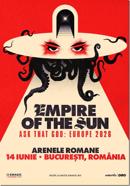 Postat: 02/02/2026 Înscris în: Știri | Tags: 14 iunie, 2026, arenele romane, bucuresti, concert, empire of the sun Scrie un comentariuEmpire of the Sun revin la București pe 14 iunie 2026. Concertul, ce face parte din turneul Ask That God, va avea loc la Arenele Romane. Biletele sunt disponibile la bilete.emagic.ro și Entertix.ro.