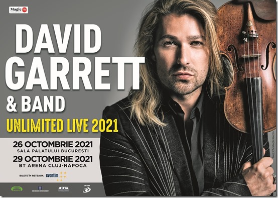 Întristat că turneul mondial „UNLIMITED LIVE” nu se mai poate desfășura anul acesta, DAVID GARRETT este bucuros că poate confirma datele anunțate și promite să compenseze această întârziere cu două concerte fantastice în 2021: