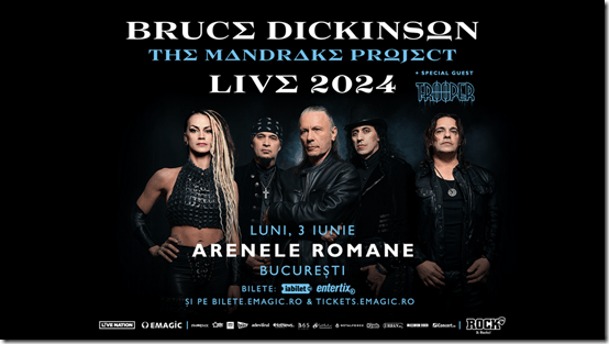 Luni, 3 iunie, BRUCE DICKINSON revine la București, la Arenele Romane. În deschidere: TROOPER. Accesul se face începând cu ora 18:00. Biletele pot fi achiziționate în continuare de la tickets.emagic.ro, bilete.emagic.ro și din rețelele Entertix și iaBilet.
