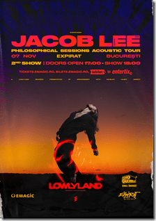 Concertul JACOB LEE anunțat pentru 7 noiembrie în clubul Expirat din București este SOLD OUT. Artistul a anunțat un al doilea show, în aceeași zi, începând cu ora 18:00 (acces de la 17:00). . Biletele sunt în vânzare la tickets.emagic.ro, bilete.emagic.ro, iaBilet și Entertix.