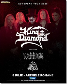 KING DIAMOND canta pe 8 iulie la Arenele Romane din Bucuresti. Invitati sunt UNTO OTHERS (SUA). Acestora li se va alatura Trooper.
