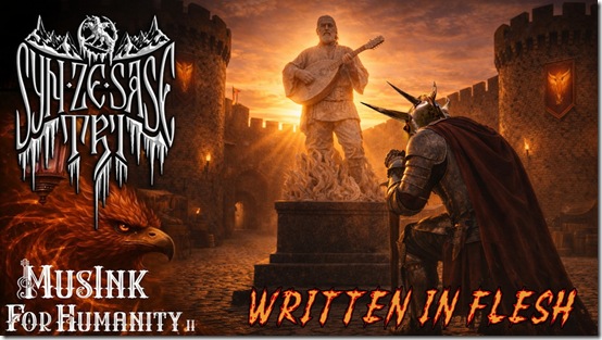 „WRITTEN IN FLESH” este disponibil pe canalul de YouTube al trupei (youtube.com/@synzesasetri666), ulterior fiind inclus pe cel de-al doilea volum al compilației MusInk for Humanity (facebook.com/profile.php?id=61581427956052)