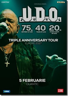 Legenda heavy metalului german, U.D.O., se pregătește să pornească în turneu la începutul anului 2027 cu marea sa „Triple Anniversary Tour 2027”, sărbătorind trei evenimente importante simultan: împlinirea a 75 de ani de către Udo Dirkschneider, 40 de ani de existență a trupei U.D.O. și viitorul album de studio al trupei, al 20-lea, care urmează să fie lansat la începutul anului 2027 prin intermediul Reigning Phoenix Music. După succesul albumului Touchdown din 2023, U.D.O. își continuă drumul neîncetat cu un album nou-nouț, aflat în prezent în lucru. Deși titlul albumului rămâne secret pentru moment, fanii se pot aștepta la mai multe detalii și la noi piese muzicale care vor fi dezvăluite în lunile următoare.
