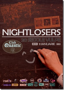 Postat: 07/01/2019 Înscris în: Știri | Tags: 11 ianuarie, 2019, concert, Live, nightlosers, quantic Scrie un comentariu