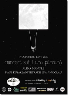 Postat: 15/10/2019 Înscris în: Știri | Tags: 17 octombrie, 2019, alina manole, bucuresti, concert, luna patrata, quantic Scrie un comentariu17 octombrie 2019, ora 20:00