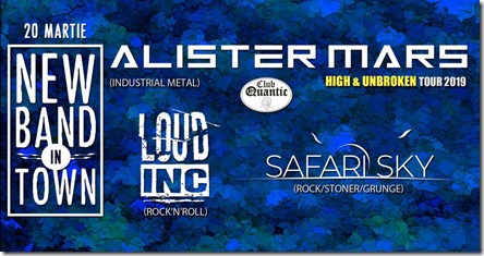 Postat: 28/02/2019 Înscris în: Știri | Tags: 20 martie, 2019, alister mars, bucuresti, live. concert, loud inc, quantic, safari sky Scrie un comentariuMiercuri – 20 martie / acces public 19:00
