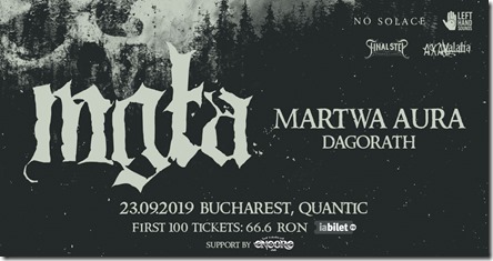 Postat: 04/10/2019 Înscris în: Live | Tags: 2019, 23 septembrie, bucuresti, concert, cronica, dagorath, Live, martwa aura, mgla, quantic, review Scrie un comentariuLuni, 23 septembrie, Quantic a fost gazda unui eveniment rar, o seară all-black metal și poloneză 100%. De la începutul anilor ‘80, de la seminalii Kat (“călăii” din Katowice, încă în activitate) și până în ziua de azi, scena poloneză a dat dovadă de o fertilitate și diversitate neașteptate aprioric, ca și de o originalitate și forță ce au dus nume ca Batushka și mai ales Behemoth în ligile superioare.