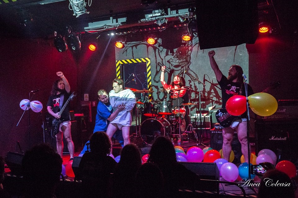 Iar dacă totul fusese foarte serios până atunci, petrecerea a început cu baloanele colorate ce au invadat scena pentru Blutrină, care își lansau albumul de debut, Looney Fuckin’ Grind, aproape o jumătate de oră de gore/porn grind și caterincă.