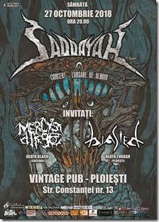 Alături de Saddayah vor mai urca pe scenă Mercy’s Dirge (legendary death black metal/Suceava) și Blasted (melo-death).