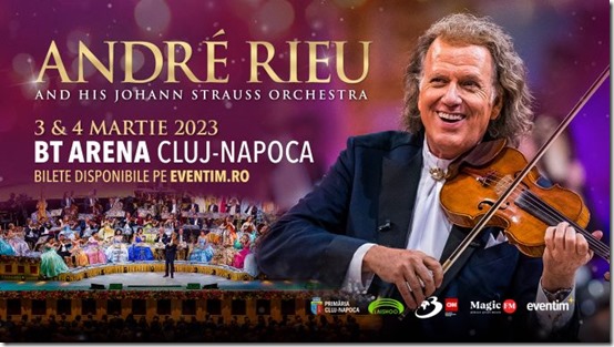 După seria de 4 concerte sold-out, susținute în 2019 la Cluj-Napoca, André Rieu a inclus România în programul noului său turneul mondial, iar admiratorii artistului din țara noastră se vor putea bucura de magia muzicii într-un nou spectacol fabulos, prezentat de celebrul violonist alături de cei 60 de muzicieni desăvârșiți cunoscuți sub numele Johann Strauss Orchestra.