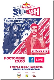 Pe 9 octombrie se anunță o bătălie muzicală epică între două armate cu greutate, Subcarpați și Vița de Vie, la cea de-a treia ediție Red Bull SoundClash! Cea mai mare bătălie din istoria muzicii românești se va desfășura în 4 runde emblematice, învingătorul fiind decis de ovațiile publicului prezent, înregistrate cu decibelmetrul arenei. Evenimentul marchează prima confruntare din România între folclorul underground și rock-ul alternativ! Două trupe. Două scene. Un singur învingător. Vezi teaser.