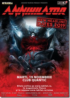Postat: 20/09/2018 Înscris în: Știri | Tags: 19 noiembrie, 2019, amanare, annihilator, concert, Live, quantic, turneu Scrie un comentariu