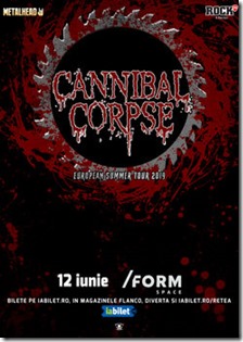 Cannibal Corpse tocmai au terminat turneul american ca support pentru Slayer (alături de Lamb Of God și Amon Amarth) și luna aceasta traversează oceanul în Europa. Pe 12 iunie vor cânta în Cluj (Form Space) și pe 13 iunie în București (Quantic). Biletele sunt disponibile pe iabilet.ro și în rețeaua iabilet.ro/retea.