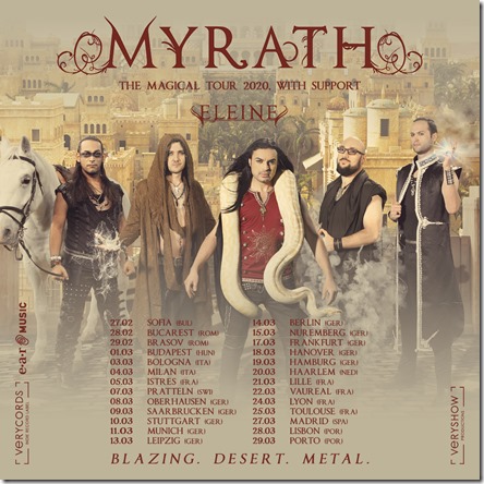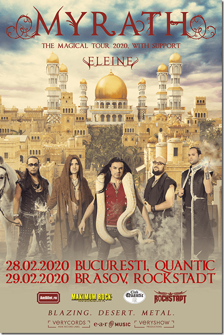 Iată că în 2020 încheiem iarna cu două concerte călduroase: MYRATH revine în România pentru a susține două concerte memorabile în București și Brașov alături de un invitat special: Eleine.