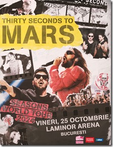 Postat: 06/06/2024 Înscris în: Știri | Tags: 2024, 25 octombrie, 30 seconds to mars, bucuresti, concert, hala laminor Scrie un comentariu