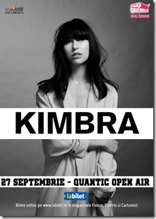 Cunoscută publicului larg pentru colaborarea cu Gotye pe „Somebody that I used to know” dar și pentru piesele cu zeci de milioane de viewuri precum „Settle Down” sau „Cameo Lover”, KIMBRA cântă în premieră în România a București vineri pe 27 septembrie la Quantic Open Air (terasa de vară în aer liber a Clubului Quantic din Șoseaua Grozăvești 82 – lângă metrou Grozăvești – capacitate de 1000 de persoane). Biletele se pun în vânzare pe 26 iulie la ora 10:00 pe iabilet.ro și în rețeaua iabilet.ro iar primele 100 de bilete au preț special.