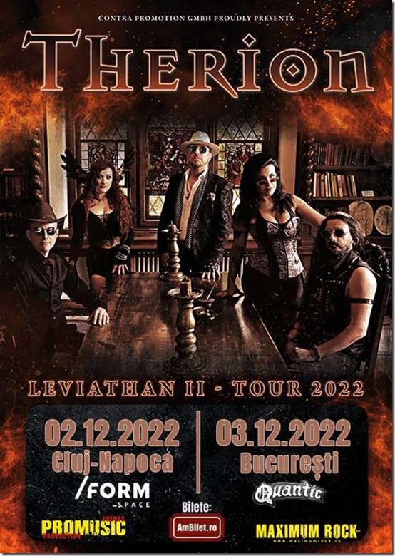 După un concert Sold Out la București (11.03.2018) și un excelent recital în cadrul Maximum Rock Festival 2021, formația suedeză THERION revine în România în cadrul “LEVIATHAN II TOUR 2022” cu două concerte: