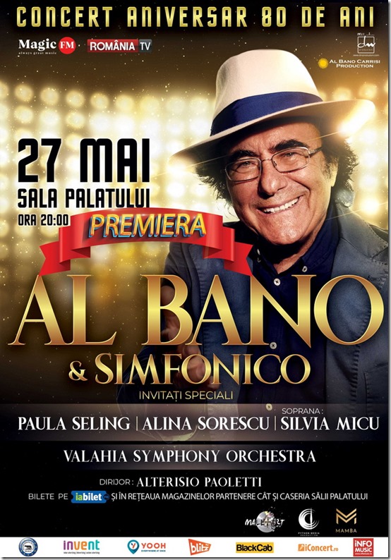 Așadar, scena Sălii Palatului va găzdui o petrecere fastuoasă de neratat pentru iubitorii de concerte de toate categoriile de vârstă. Soprana Silvia Micu, Paula Seling sau Alina Sorescu sunt câțiva dintre artiștii români apropiați de sufletul maestrului Al Bano care vor urca pe scenă în calitate de invitați.