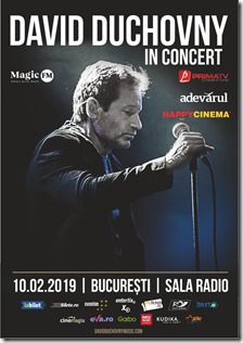 Postat: 15/02/2019 Înscris în: Live | Tags: 10 februarie, 2019, bucuresti, concert, cronica, david duchovny, Live, review, sala radio Scrie un comentariuDavid Duchovny face parte din acea categorie de oameni care fac multe lucruri și au succes cu toate. Deși probabil cei mai mulți îl cunosc din rolurile jucate în seriale de succes ca X-Files și Californication, este doctorand în literatură engleză la Yale și a publicat trei romane (toate trei pe lista NY Times Bestsellers). Prin 2011 s-a apucat să învețe să cânte la chitară, iar până acum a scos și două albume, Hell and Highwater (2015) și Every Third Thought (2018).