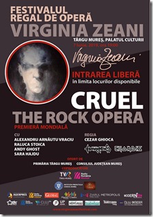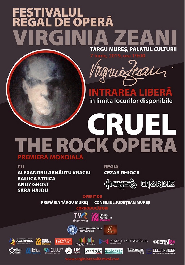 Îmbinare între rock, clasic și muzică religioasă, opera rock „Cruel”, în regia lui Cezar Ghioca, va avea premiera mondială vineri, 7 iunie, de la ora 19.00, la Palatul Culturii din Târgu Mureș. Patru soliști vocali excepționali, acompaniați de orgă clasică, un cvartet de coarde și o trupă rock – spectacolul “Cruel” promite o interpretare grandioasă a unei lucrări fusion cu sunet neașteptat și unic, inspirat de lucrările lui Mozart, Brahms sau Schubert, dar amintind de punk rock, de Nirvana, Dream Theater sau de AD/DC.