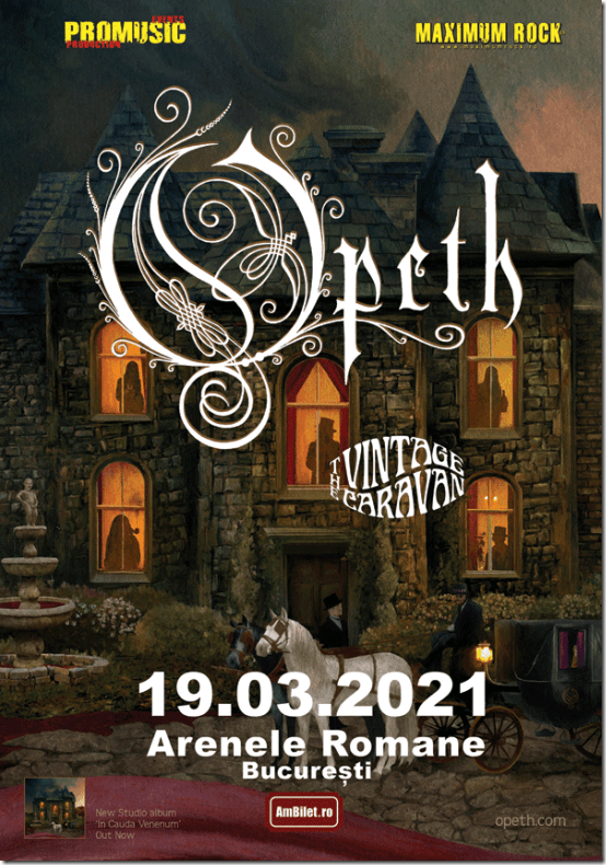 Evenimentul va avea loc la Arenele Romane din București, în cadrul turneului european “Opeth 2021 – In Cauda Veneum”. În deschidere vor performa islandezii de la The Vintage Caravan.